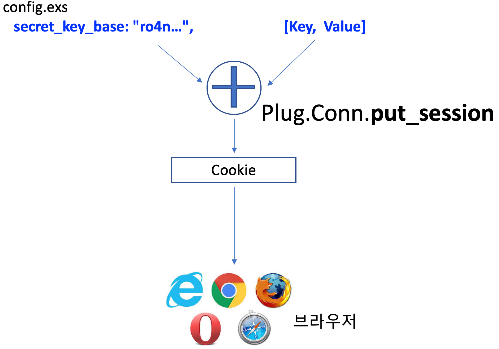 - 서버에서는 HTTP Header의 Cookie 값을 복호화하고, 이 값을 Plug.Conn.get_session으로 참조 할 수 있도록 합니다.