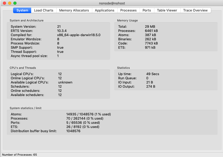그리고, 디버깅, 시스템 상태등을 볼 수도 있습니다. 시험적으로 iex에서 :observer.start라고 입력을 해보세요..