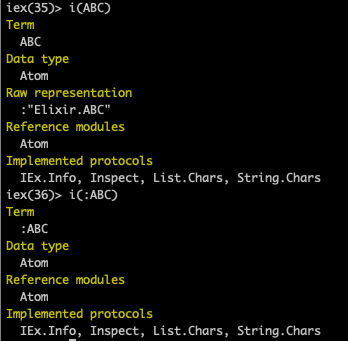 그냥 대문자 ABC는 내부적으로는 :"Elixir.ABC"로 자동적으로 표현되며, :ABC는 그냥 :ABC입니다.